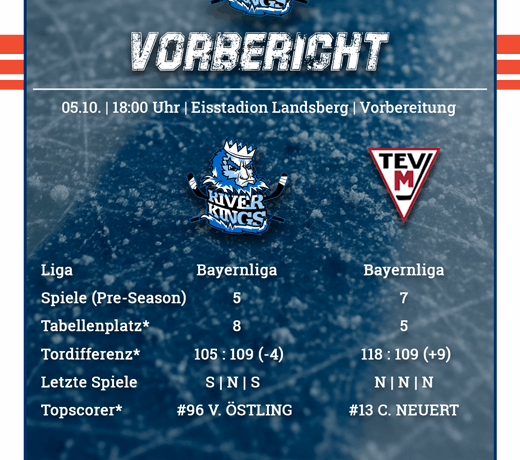 Im letzten Vorbereitungsspiel auf die anstehende Bayernliga-Saison 2025/26 treffen die Riverkings auf einen weiteren Favoriten der Liga – den TEV Miesbach.