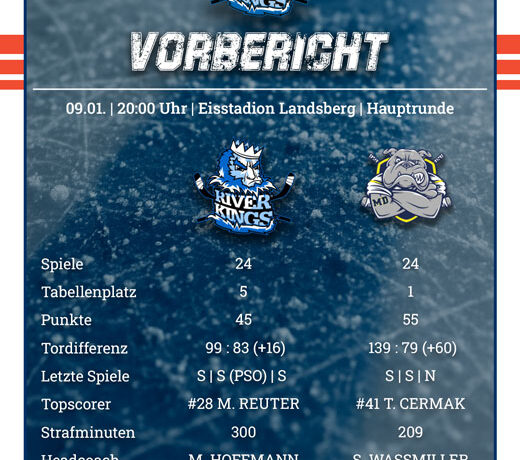 Ein Wochenende der Kontraste wartet auf die Riverkings. Am Freitag um 20:00 Uhr begrüßen die Landsberger den Tabellenführer Schweinfurt im heimischen Eisstadion, am Sonntag reist man zu Platz 15 der Tabelle, nach Amberg.
