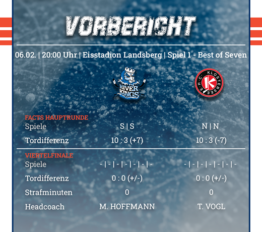 Am vielleicht bisher wichtigsten Wochenende der gesamten Vorrunde treffen die Riverkings in den letzten beiden Partien vor Beginn der Playoffs zunächst zu Hause auf die Devils aus Ulm und am Sonntag dann auswärts auf Pfaffenhofen.