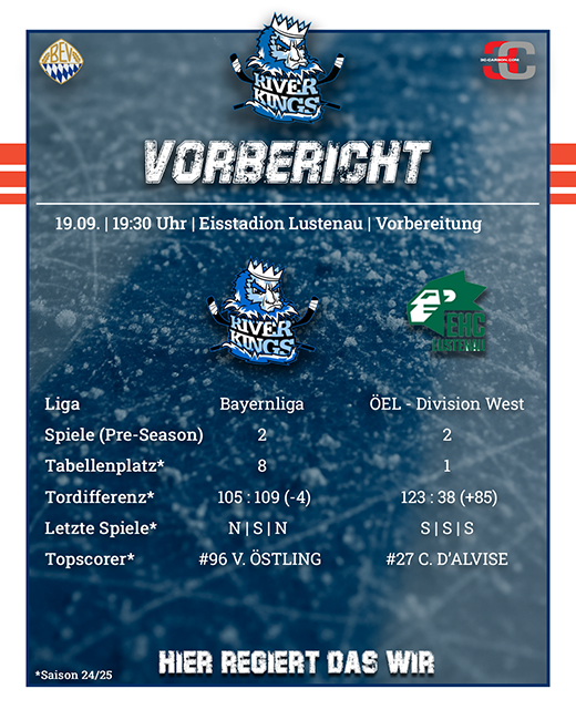 Der Gastgeber EHC Lustenau hat bislang beide Vorbereitungsspiele gewonnen und gilt als starker Gegner. Das Team spielt in der Ö Eishockey Liga Division West und dominierte diese in der vergangenen Saison. Entsprechend erwartet die Riverkings ein echter Härtetest.