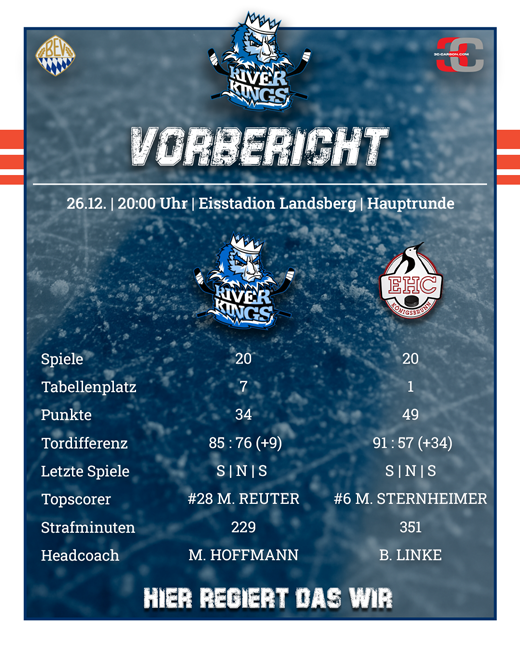 Am zweiten Weihnachtsfeiertag gastiert der Tabellenführer EHC Königsbrunn um 20:00 Uhr im Landsberger Eisstadion, am Sonntag reist der HCL nach Miesbach. Spielbeginn ist dort um 18:00 Uhr.