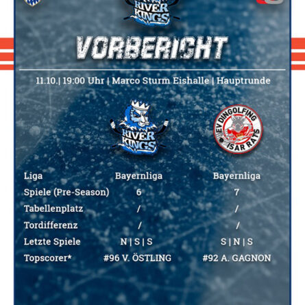 Zum Eröffnungsspiel der Bayernliga-Saison 2025/26 reisten die Riverkings zu den Isar Rats nach Dingolfing.